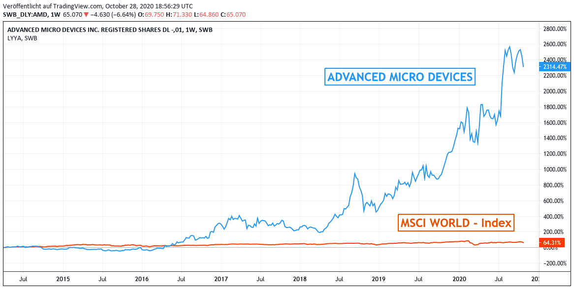 Chart: AMD gegen MSCI WORLD - Index (jeweils in Euro)