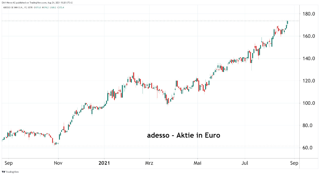 Zwar wird adesso seinen Halbjahresbericht plangemäss erst am 30. August vorstellen. Allerdings sind wir bereits jetzt davon überzeugt, dass sich die Firma nach einem erfolgreichen Auftaktquartal auch im Zeitraum von April bis Juni ebenfalls überaus positiv weiterentwickelt hat. Dies sehen offenbar auch die meisten Investoren so, weshalb die adesso-Aktie dank einer starken Nachfrage den seit März 2020 anhaltenden Aufwärtstrend zuletzt nahezu uneingeschränkt fortsetzte.