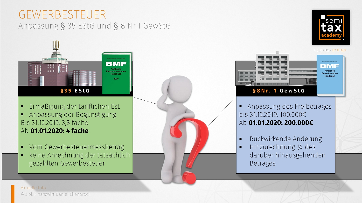 Für den Veranlagungszeitraum 2020 sind zwei Änderungen bezüglich der Gewerbesteuer eingeführt worden. Für Unternehmen könnten diese zu einer Steuerentlastung führen.
