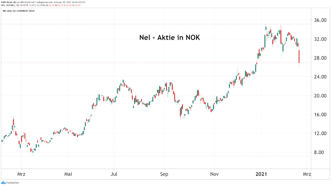 Sicherlich bestehen für alle Firmen mittelfristig hervorragende Wachstumsaussichten und die Chancen, nachhaltig positive Gewinne zu erzielen. Allerdings zeigt der heutige Abverkauf der Nel ASA-Aktie, dass die Zukunftsphantasien einiger Retailinvestoren doch vielleicht deutlich übertrieben waren. Denn mittlerweile strömen immer mehr Startups und Großkonzerne in diesen Sektor, wobei letztere oftmals über riesige finanzielle Mittel und technische Ressourcen verfügen, um den bisherigen drei Börsen-Highflyern zunehmend Konkurrenz zu machen.