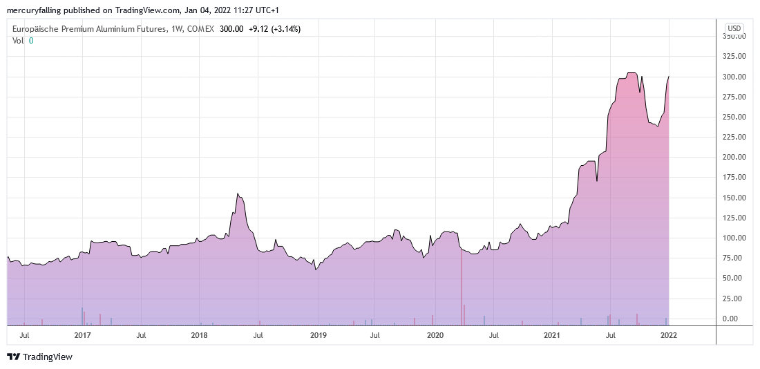 Der Aluminiumpreis hat ein sehr gutes Jahr 2021 hinter sich, denn er konnte um rund 42 % zulegen.