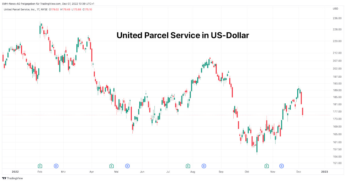 Den Bericht von UPS zum laufenden 4. Quartal erwarte ich am 31. Januar. Die Prognosen der Wall Street sind immer noch stark. Im Schnitt wird ein Umsatz von 28,1 Mrd. US-Dollar und ein bereinigter Gewinn je Aktie von 3,61 US-Dollar erwartet. Der starke Sprung im Vergleich zum 3. Quartal resultiert aus der Saisonalität bzw. dem Weihnachtsgeschäft.