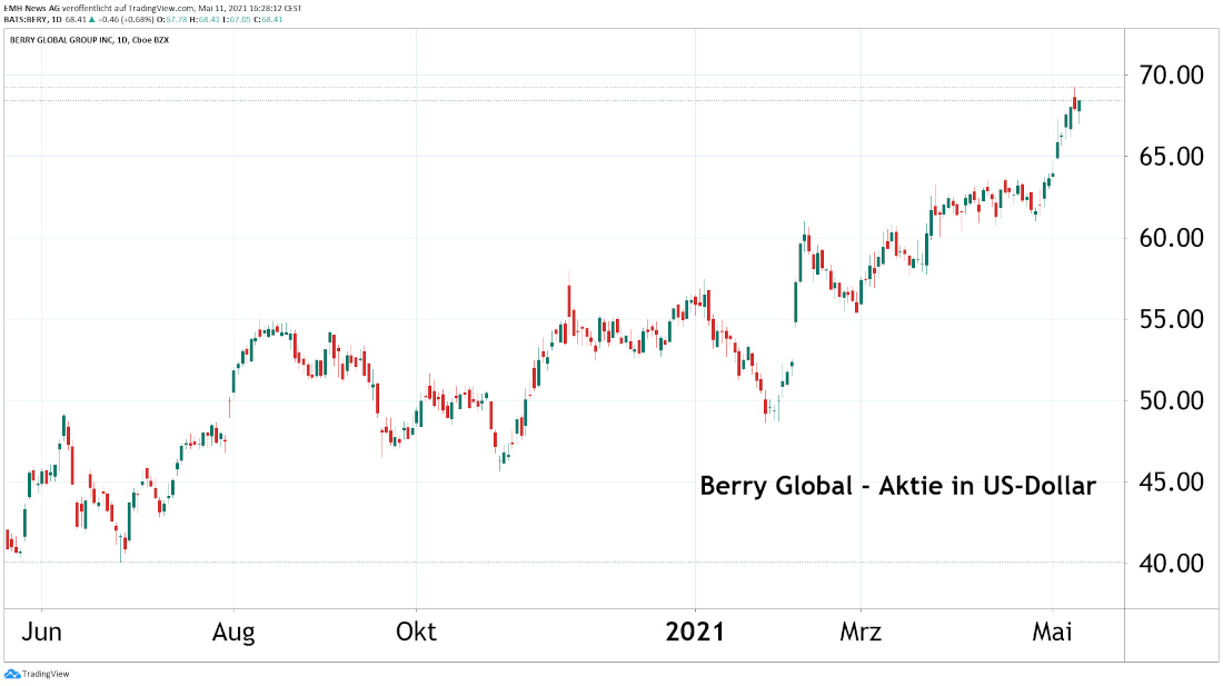 Aktuell wird der Titel mit einem geschätzten 2021er-KGV von 13 und einem geschätzten 2022er-KGV von 11 gehandelt. Allerdings haben viele Analysten ihre Erwartungen für das Jahr 2022 in den vergangenen Monaten bereits zuletzt mehrfach nach oben revidiert, weshalb wir betreffend der mittelfristigen Gewinnentwicklung bei der Firma weiterhin ein positives Überraschungspotenzial sehen. Ferner spricht für den Kauf der Berry-Aktie, dass die Firma mit ihren qualitativ überaus hochwertigen Produkten gut im Wettbewerb aufgestellt ist, was langfristig ein überdurchschnittliches Wachstum bei einer vergleichsweise hohen Profitabilität erwarten lässt. Zudem bestehen gute Chancen, dass Berry Global ab dem Jahr 2022 die Dividendenzahlungen aufnimmt, was die Attraktivität des Anteilscheins nochmals steigern würde.