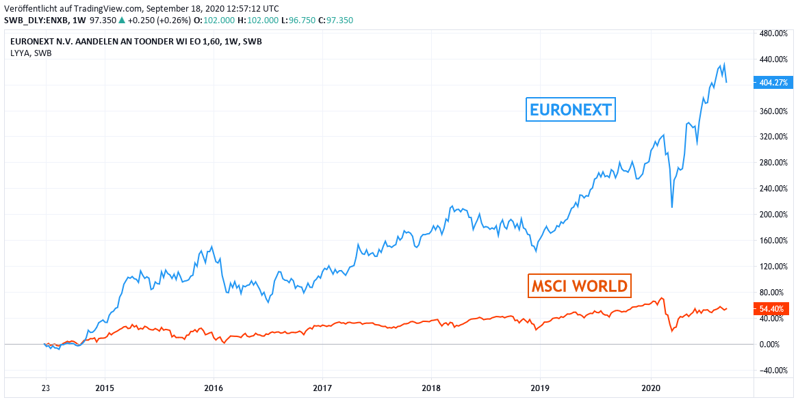 Chart: EURONEXT gegen MSCI WORLD (Euro) - Index