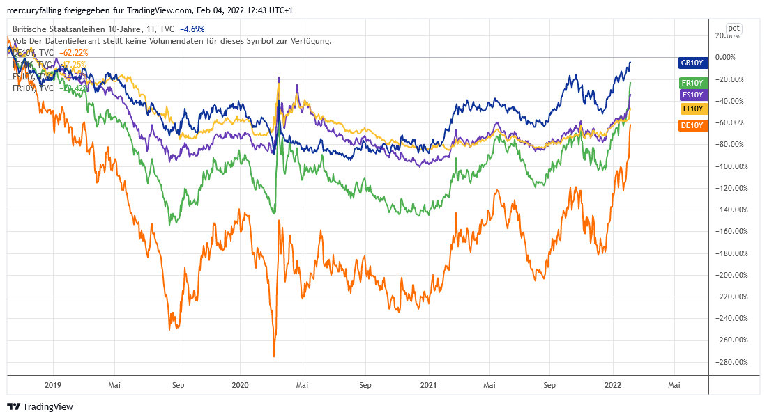 Parallel blieb die EZB in Bezug auf Zinserhöhungen noch abwartend, Madame Lagarde signalisierte aber für die nächste Sitzung im März Handlungsbereitschaft. Man darf also gespannt sein, wie dies bei der EZB aussieht, denn auch innerhalb der EZB gewinnen die Forderungen nach einer glaubwürdigen Reaktion auf die anhaltend hohen Inflationsraten schnell an Unterstützung.