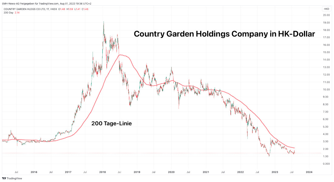 Das Investitionsrisiko bei Country Garden ist stark erhöht. Der Anleihemarkt preist einen Ausfall und eine Restrukturierung ein, was signalisiert, dass die Aktionäre leer ausgehen könnten, wenn das Unternehmen keine Refinanzierungen findet. Die Absage der Kapitalerhöhung, nachdem man bereits das Orderbuch gefüllt hatte, muss aber im Zusammenhang mit den jüngsten Massnahmen der Regierung gesehen werden. Bekommt Country Garden direkte oder indirekte Hilfe aus Peking, ist man aus dem Schneider und die Aktien (und Anleihen) schiessen durch die Decke. Wenn nicht, kann der Aktienkurs im schlechtesten Fall auch auf Null fallen. Naheliegend ist, dass das Management aus Peking signalisiert bekommen hat, dass man mit einer Refinanzierung rechnen kann, weswegen man die stark verwässernde Kapitalerhöhung abgesagt hat.
