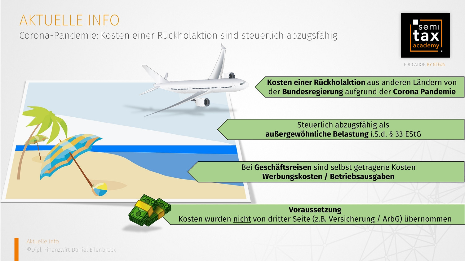 Corona Rückholaktion: Kosten können steuerlich abgesetzt werden