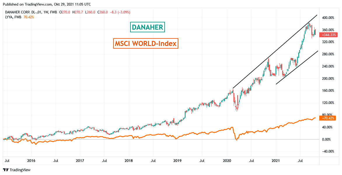 Chart: DANAHER gegen MSCI WORLD (Euro)-Index