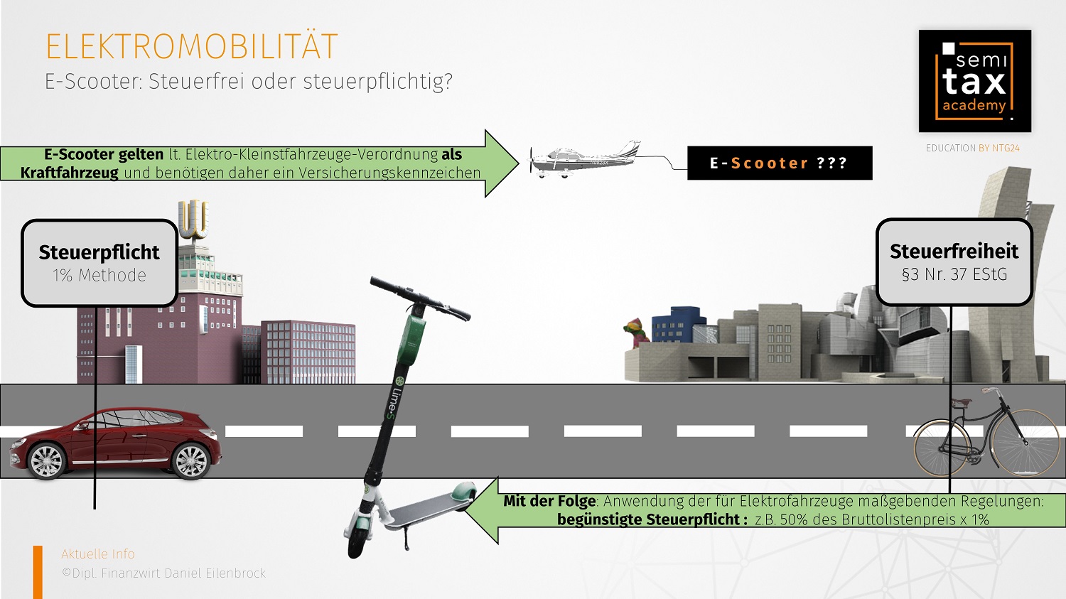 Ist die Überlassung eines E-Scooters steuerfrei oder steuerpflichtig – Kurzinfo