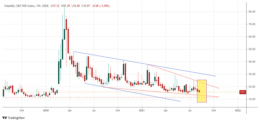 Das Sommerloch und einander ablösende Liquiditätswellen in Koordination von Geld- und Fiskalpolitik haben in den vergangenen Monaten nicht nur zu immer neuen Höchstständen bei den Aktienindizes geführt, sondern auch zu einer gleichzeitig stark steigenden Sorglosigkeit der Investoren, welche sich im VIX widerspiegelt.