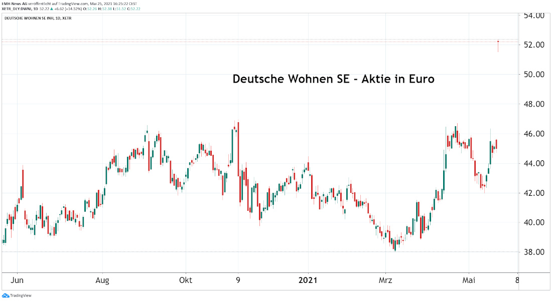 Für die Aktionäre der Deutsche Wohnen SE (DE000A0HN5C6) verlief dieses Frühjahr bislang hervorragend. Konnte der Anteilschein des auf Berlin fokussierten Immobilienbestandhalters noch im April massiv von der Entscheidung des Bundesverfassungsgerichts profitieren, dass der Mietendeckel in der deutschen Hauptstadt verfassungswidrig sei, so gab der Bochumer Konkurrent Vonovia (DE000A1ML7J1) jetzt ein konkretes Übernahmeangebot für die Gesellschaft in Höhe von 52 Euro je Anteilschein ab. Somit beläuft sich der Aufschlag gegenüber dem Xetra-Schlusskurs von Freitag auf 16 %, was für einen Wohnungskonzern bereits einer ordentlichen Übernahmeprämie entspricht.