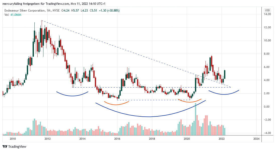 Die Investoren sahen das anscheinend ebenso und stuften die Aktie von Endeavour Silver gestern um 7,83 % auf 5,51 Dollar nach oben.