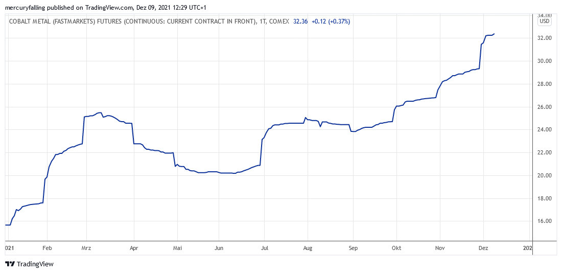 In jedem Elektroauto steckt Kobalt, und hinter Kobalt steckt die Republik Kongo. So etwa könnte man die aktuelle Ausgangslage auf dem weltweiten Kobalt-Markt zuspitzen. Seit Jahresbeginn hat sich der Preis des Kobalt-Future-Kontraktes an der COMEX praktisch verdoppelt.