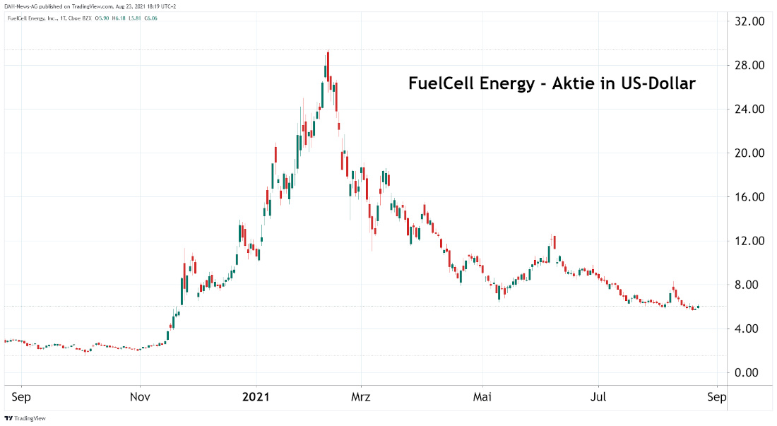 Zu Beginn des Jahres stiegen einige Aktien aus dem Wasserstoffsektor wie der Anteilschein von FuelCell Energy (US35952H6018) auf zuvor nahezu unvorstellbare Höhen. Getrieben wurden die Kurse vor allem von massiven Privatanlegerkäufen, die damals nach einem steilen Kursanstieg auf noch weitaus höhere Gewinne hofften. Allerdings warnten wir bereits damals in mehreren Artikeln fast regelmäßig vor einem Platzen der Blase, auch wenn solche kritischen Stimmen damals nicht überall auf Gehör stießen.