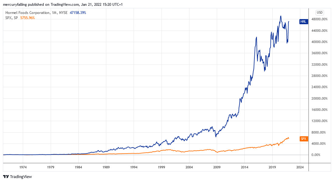 Die Aktie von Hormel Foods gehört zu den wachstumsstabilsten Aktien im S&P 500 – Index. Die jüngst publizierten Quartalszahlen für das 4. Quartal 2021 bestätigten dies ebenso wie die seit Jahrzehnten getätigten Dividendenerhöhungen. In der Corona-Pandemie hat das Unternehmen zusätzliche Preissetzungsmacht gewonnen. Die Aktie bleibt attraktiv.