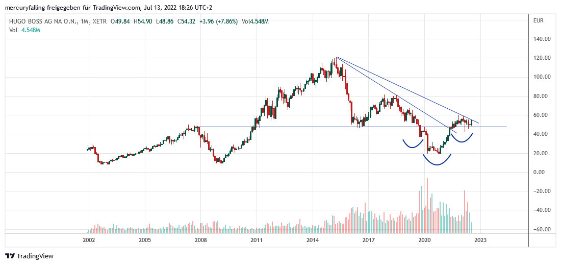 Die Aktie von Hugo Boss weist gegenüber ihrem Index, dem MDAX, in diesem Jahr eine deutliche Besserentwicklung auf. Ein näherer Blick auf die charttechnische Muster- und Indikatorenlage zeigt, dass der Titel einiges Kurspotenzial aufgebaut hat. Zwar ist noch offen, was der Auslöser eines neuen Aufwärtsimpulses sein wird. Jedoch deutet einiges darauf hin, dass dieser in den kommenden Wochen ausgelöst wird. Die Aktie bleibt weiter aussichtsreich.