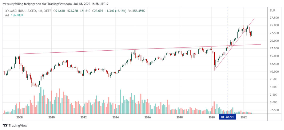 Ein Blick auf entsprechende Anlagen im indischen Aktienmarkt erscheinen vor diesem Hintergrund aussichtsreich. Einer dieser den breiten indischen Aktienmarkt abbildenden Anlagen ist der Lyxor MSCI India UCITS ETF - Acc (EUR) (FR0010361683)