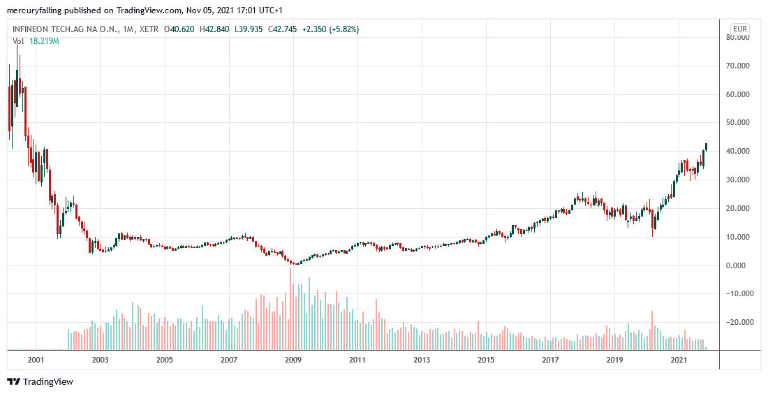Die hohe Halbleiternachfrage lässt auch das Geschäft von Infineon Technologies (DE0006231004) weiter brummen. Dies deutete das Unternehmen zuletzt auch auf seinem Kapitalmarkttag an. Denn die großen Megatrends wie Energieeffizienz, Mobilität, Sicherheit sowie Internet der Dinge deuten auf eine dauerhaft dynamische Halbeiternachfrage hin.
