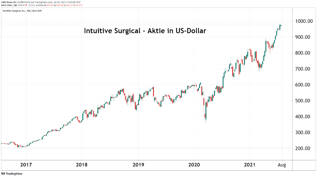 In den vergangenen Jahren haben sich die Anwendungsbereiche für medizinische Roboter deutlich ausgeweitet, da diese den spezialisierten Ärzten oftmals weit überlegen sind. Zudem entwickelt Intuitive Surgical seine Technik stetig weiter, was künftig einen noch deutlich stärkeren Einsatz dieser Systeme erwarten lässt. Zudem überzeugt Intuitive Surgical mit seiner technologisch überaus starken Wettbewerbsposition, die der Gesellschaft eine starke Preissetzungsmacht verleiht. So konnte die Firma im zweiten Quartal eine überaus stattliche Nettoumsatzrendite von 35.3 % erzielen, womit die künftige Expansion zum Grossteil aus dem operativen Geschäft finanzierbar sein sollte.