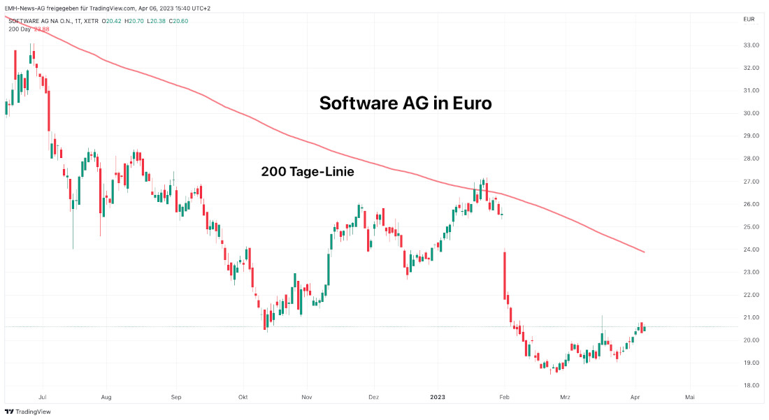An der Börse kommt das Engagement der Amerikaner aus dem Silicon Valley nicht gut an. Die Aktien der Software AG haben sich zwischenzeitlich mehr als halbiert. Zuletzt sorgte der Jahresabschluss für lange Gesichter. Die Software AG erreichte zwar fast vorzeitig das Ziel einer Umsatzmilliarde, aber die Profitabilität rutschte tief in den Keller. Aufgrund deutlich gestiegener Wechselkursverluste, einer umfassenden Wertminderung und Restrukturierungskosten rutschte das operative Ergebnis von 117 auf 76 Mio. Euro und das Ergebnis nach Steuern von 84 auf 19 Mio. Euro ab. Das sorgte für den letzten Kursabsturz von Anfang Februar.