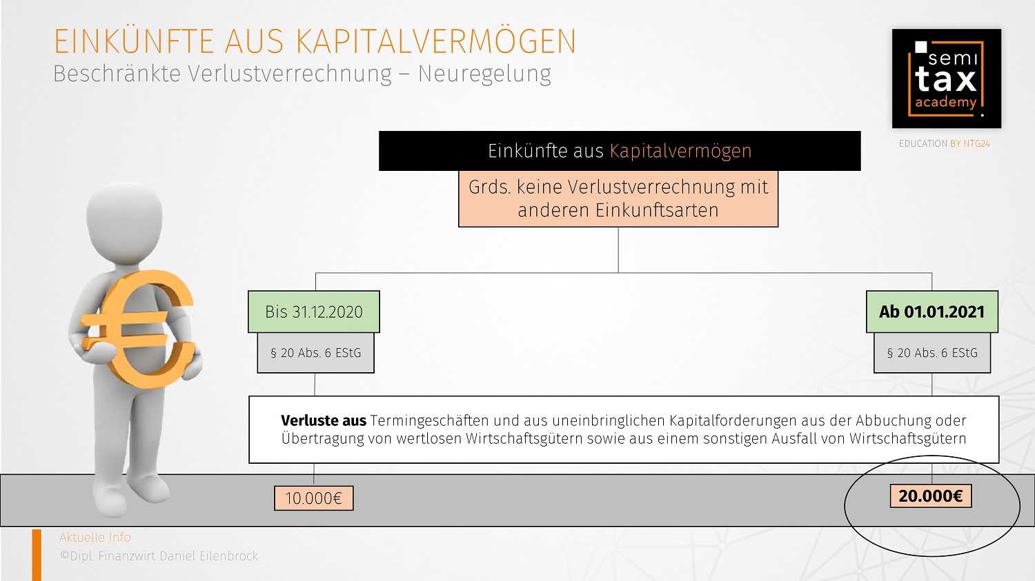 Die Anhebung der Grenze für Verluste aus Termingeschäften findet dagegen erst Anwendung auf Verluste die nach dem 31.12.2020 entstehen.