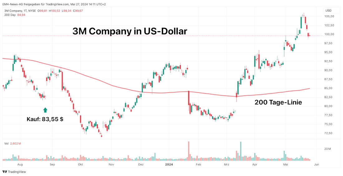 Das Beste, was man über 3M derzeit sagen kann, ist, dass die grössten Probleme langsam aber sicher gelöst werden. Das honoriert die Wall Street mit steigenden Kursen, da man auf steigende Margen in der Zukunft spekuliert.
