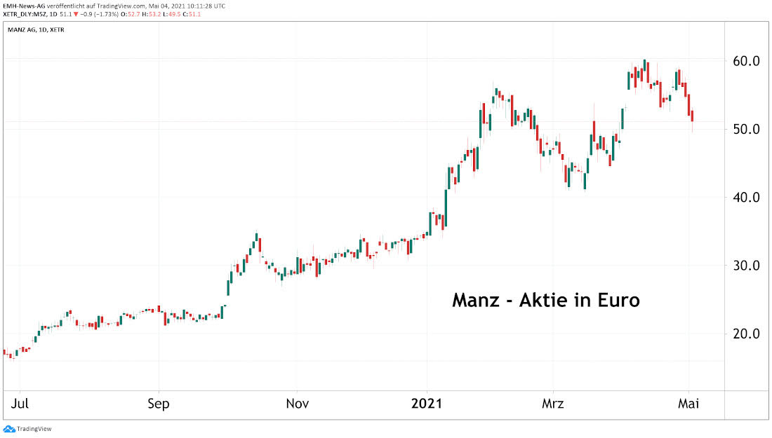 Da der Bereich der Energiespeicherung bei Anlegern hoch im Kurs steht und Manz künftig auf diesem Feld mit hoher Wahrscheinlichkeit massive Umsatz- und Gewinnsteigerungen erzielen dürfte, bleibt ein Investment in das Unternehmen weiterhin chancenreich, auch wenn die operative Entwicklung im ersten Quartal aus unserer Sicht enttäuschend war. Aktuell taxieren wir das 2022er-KGV auf 28 und das 2023er-KGV auf 19, womit der Titel dank der Chancen in der Batterie-Sparte mindestens eine gute Halteposition bleibt. Diese positive Erwartung belegen auch die Analystenschätzungen, welche im Konsens bei den Erlösen einen Sprung auf 399 Millionen Euro bis zum Jahr 2023 sehen, wobei sich der 2020er-Umsatz lediglich auf 237 Millionen Euro belief.