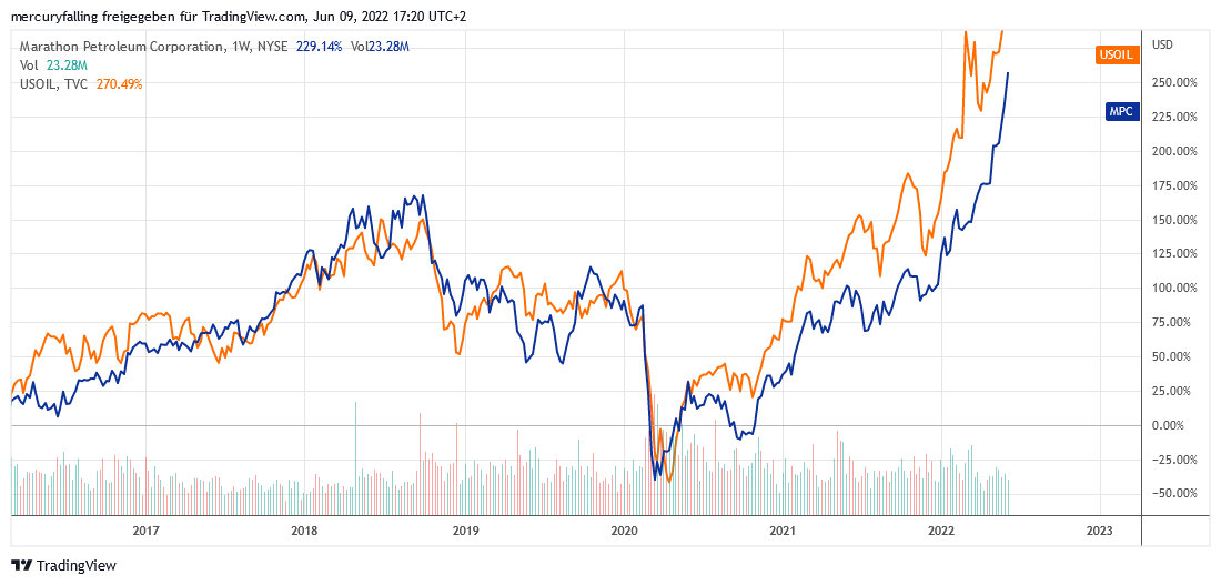 Zu den Aktien, welche derzeit praktisch gleichgerichtet dem aufwärtsstrebenden Ölpreis folgen, gehört ohne Zweifel auch jene von Marathon Petroleum (US56585A1025).