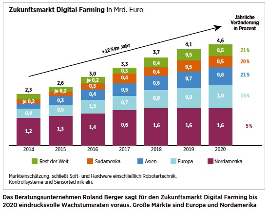 Precision Farming und Precision Agriculture (PA) werden allgemein als dasselbe angesehen. In einem Bericht aus dem Jahr 2016 darüber, wie Big Data die globale Lebensmittelkette revolutioniert, definierte McKinsey die PA als: «einen technologiebasierten Ansatz für die Bewirtschaftung der Landwirtschaft, der die Bedürfnisse einzelner Felder und Kulturen beobachtet, misst und analysiert». Laut McKinsey ist die Entwicklung der Präzisionslandwirtschaft von zwei Trends geprägt: Big-Data- und Advanced-Analytics-Fähigkeiten einerseits und Robotik - Luftbilder, Sensoren, ausgefeilte lokale Wettervorhersagen - andererseits.