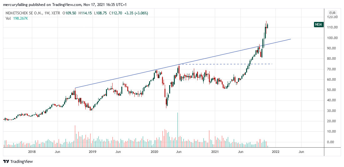 Nemetschek befindet sich weiter auf dynamischen Wachstumskurs. Die Zahlen zum 3. Quartal 2021 bestätigten dies. Die hohe Bewertung und die Charttechnik erinnern allerdings an einen deutlichen Konsolidierungsbedarf, der Einstiegschancen bieten dürfte.