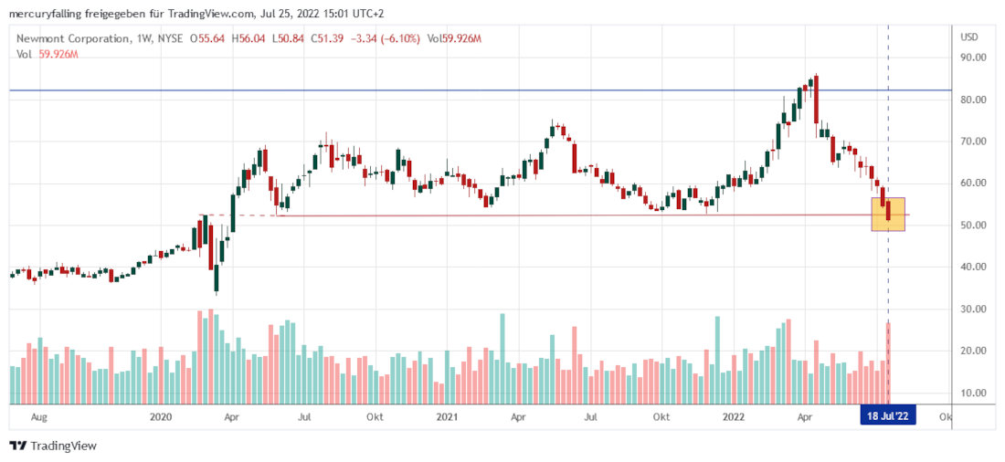 Das Bergbauunternehmen Newmont meldete am Montag für das zweite Quartal 2022 einen deutlichen Gewinnrückgang. Dieser resultierte neben tieferen Goldpreisen auch aus weiter steigenden Kosten. Parallel zu der Entwicklung der letzten Monate neigt auch die Aktie von Newmont weiter zur Schwäche.