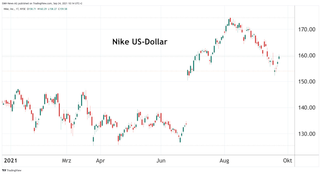Die Analysten schauten daher nach Vorlage der Zahlen vor allem auf den Lagerbestand. Normalerweise ist man bei einem Einzelhändler darauf bedacht, dass sich dieser nicht zu stark ausweitet. Aufgrund der hohen Nachfrage signalisiert der Lagerbestand jedoch, wie viel Nike voraussichtlich im 2. Fiskalquartal - dem wichtigsten des Jahres für das Unternehmen - bei den Kunden absetzen kann. Die Erwartungen liefen hier im Vorfeld Richtung 7,5 Mrd. US-Dollar, aber zum Quartalsende lag der Lagerbestand „nur“ bei 6,7 Mrd. US-Dollar.