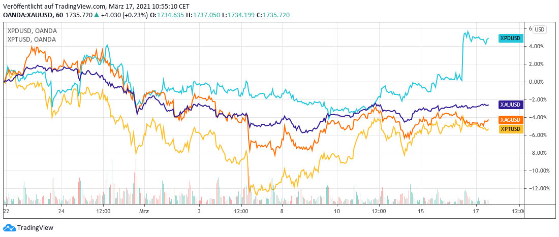 Eine nicht so überraschende Überraschung kam gestern vom weltgrößten Palladium-Produzenten Norilsk Nickel. Das Unternehmen teilte mit, dass man für 2021 einen Rückgang der Fördermenge von Nickel, Kupfer, Platin und Palladium zwischen 15 % -20 % gegenüber der bisherigen Prognose erwarte.