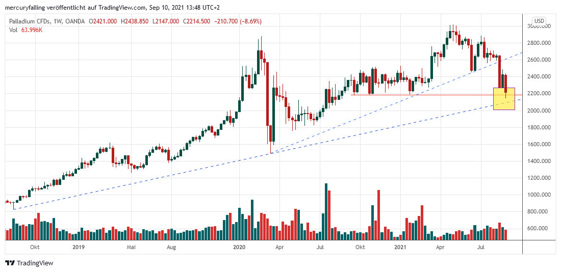 Palladium vor Test wichtiger dynamischer Unterstützung