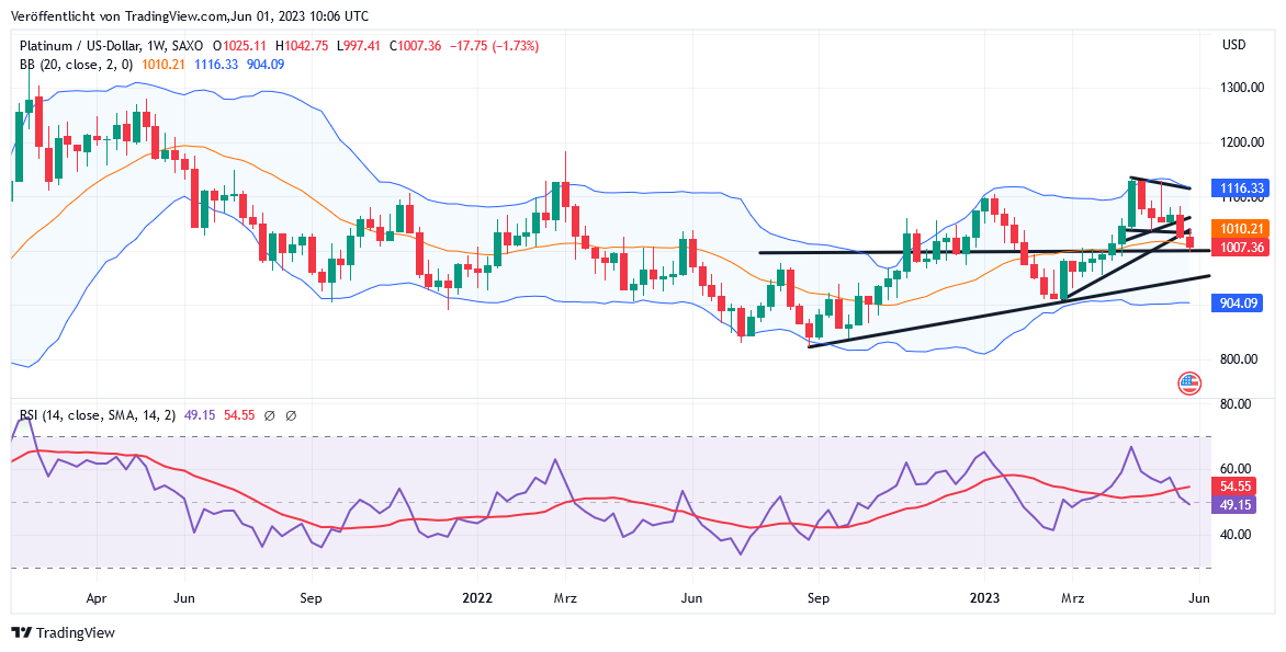 NTG24-Tagesbericht Platin vom 31.05.2023: Platin-Bestände nach Unterschreitung von 1007 USD nun eher weiter verkaufenswert