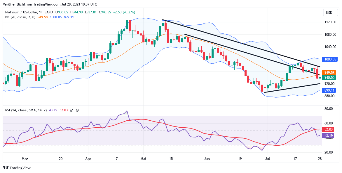 Unterschreitung des Tageschart-Bollinger-Durchschnitts bei 945 USD weiteres Alarmsignal