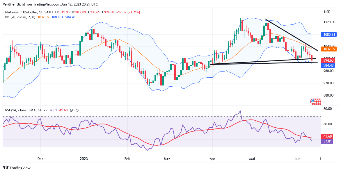 NTG24-Tagesbericht Platin vom 12.06.2023: Platin korrigiert vor US-Preisdaten für den Mai und der FED-Zinsentscheidung um - 1,4%