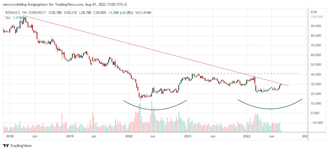 Die Aktie von Renault reagierte mit einem Kurssprung auf diese Zahlen. Vor allem die Anhebung der Prognose für die operative Marge, die für das Gesamtgeschäftsjahr nun nicht mehr bei rund 3 %, sondern bei mehr als 5 % liegen soll, euphorisierte die Investoren.