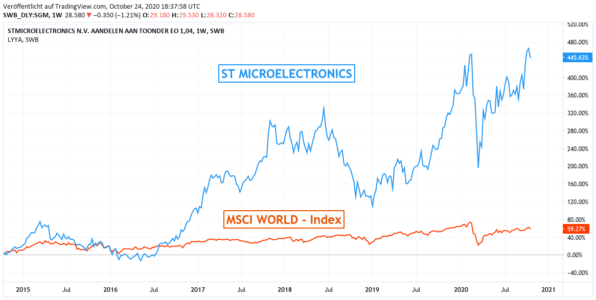 Chart: ST MICROELECTRONICS gegen MSCI WORLD (Euro) - Index