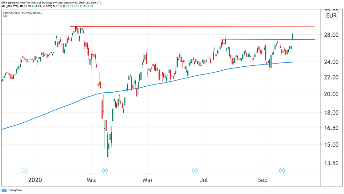 So konnte die bisherige Widerstandszone bei rund 27,25 Euro überwunden werden. Jetzt steht noch das bisherige hoch vor dem Corona-Crash bei rund 29,35 Euro auf dem Plan. Ich bin aber optimistisch, dass auch hier ein Break gelingen kann. Deshalb sollten sich Anleger entsprechend schon in Stellung bringen.