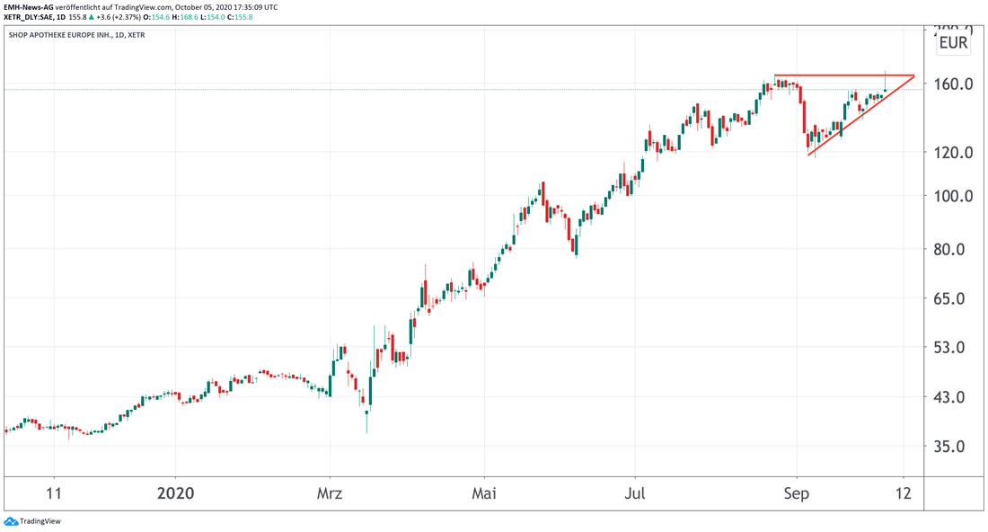 Diese neuen Zahlen haben auch die Aktie von Shop Apotheke weiter beflügelt. Zumal inzwischen wieder die Spekulation im Raum steht, dass das Unternehmen bei Bekanntgabe der endgültigen Zahlen, voraussichtlich am 5. November, für das Gesamtjahr seine Prognose nochmals nachbessern könnte.