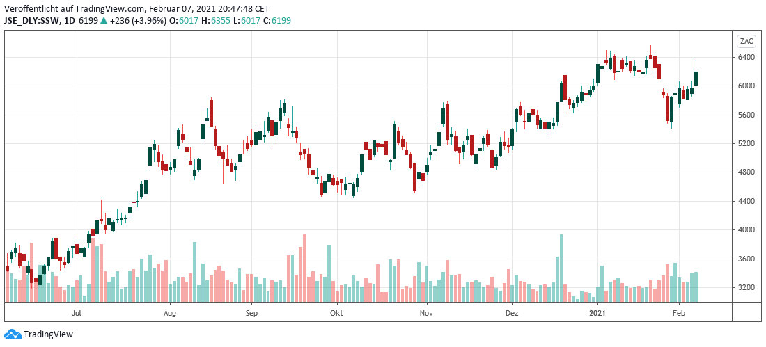 Der Konzern erwartet nun für das Geschäftsjahr 2020 einen Gewinn zwischen 28,726 Mrd. Rand und 29,898 Mrd. Rand ausweisen wird. Dies entspricht einem Betrag zwischen 1,75 und 1,85 Mrd. US-Dollar. Dieses Ergebnis liegt deutlich höher als der Gewinn des Vorjahres, der bei 62 Mio. Rand (ca. 4 Mio. US-Dollar) lag.