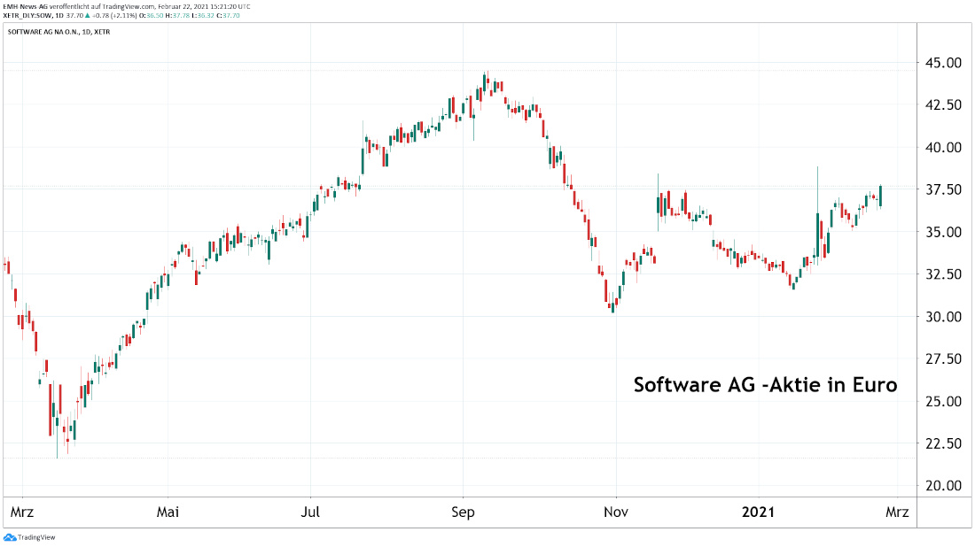 Mit ihren IT-Lösungen aus den Bereichen der Industrie 4.0, der Künstlichen Intelligenz und IoT ist der MDAX-Konzern in vielen attraktiven Sparten aussichtsreich engagiert. Entsprechend befinden sich im 10.000 Kunden umfassenden Portfolio namhafte Firmen, wie Bosch, Siemens, Continental und Philips, aber auch führende Telekommunikationsdienstleister wie die Vodafone, Teléfonica und die Deutsche Telekom. Die Tatsache, dass die Software AG den Auftragseingang im Geschäftsjahr 2020 gegenüber dem Vorjahreszeitraum um 24 % steigern konnte und sich der Zuwachs im Schlussquartal sogar auf 31 % belief, signalisiert nun eindeutig, dass die Produkte der Firma wieder zunehmend an Akzeptanz gewinnen.