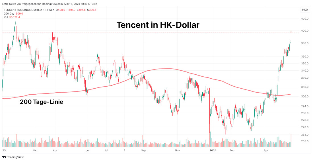 Die Börse hatte einen grossen Teil schon vorweggenommen, war dann aber dennoch von dem sehr starken Gewinnwachstum positiv überrascht. Die Aktien sprangen als Reaktion auf den Bericht am Donnerstag nach dem Feiertag kurz im Handel über die Marke von 400 HK-Dollar. Am Ende schlossen die Aktien auf dem höchsten Niveau seit dem 27. Januar 2023. Die entscheidende Frage ist nun: Geht es so weiter?