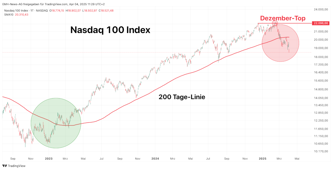 Trumps Shock-and-Awe Strategie kippt die Stimmung. Die Aufregung an der Wall Street ist gross und niemand will jetzt auf dem falschen Fuss erwischt werden. Da obendrein die Auswirkungen der grossen Vielzahl von Strafzöllen auf die Lieferketten, die Preise und Verfügbarkeit von Waren bisher nicht einmal zu erahnen sind, schiesst die Börse zuerst und stellt dann die wichtigen Fragen im Anschluss.
