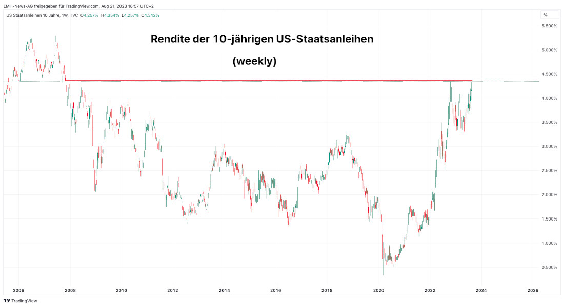 Der amerikanische Staatsanleihenmarkt erreicht eine neue Ära. Die Renditen toppen im handelsschwachen Spätsommer über das Niveau vom letzten Herbst bis auf den Stand von Ende 2007 herauf.