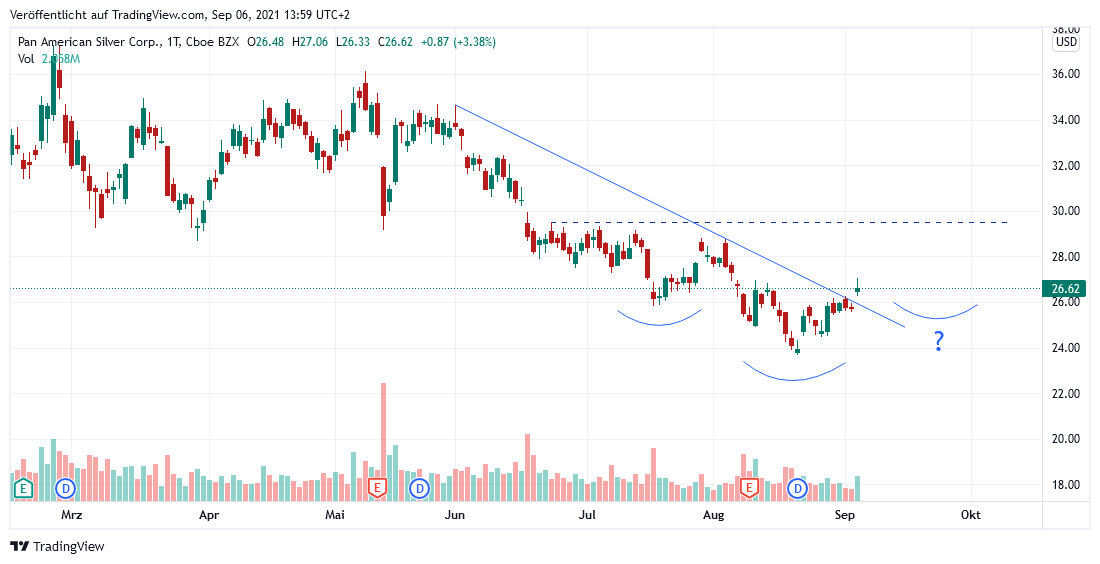Mit dem Aufwärtsimpuls vom vergangenen Freitag hat sich die charttechnische Ausgangslage bei den Minenaktien im Allgemeinen und bei Pan American Silver im Besonderen weiter verbessert.