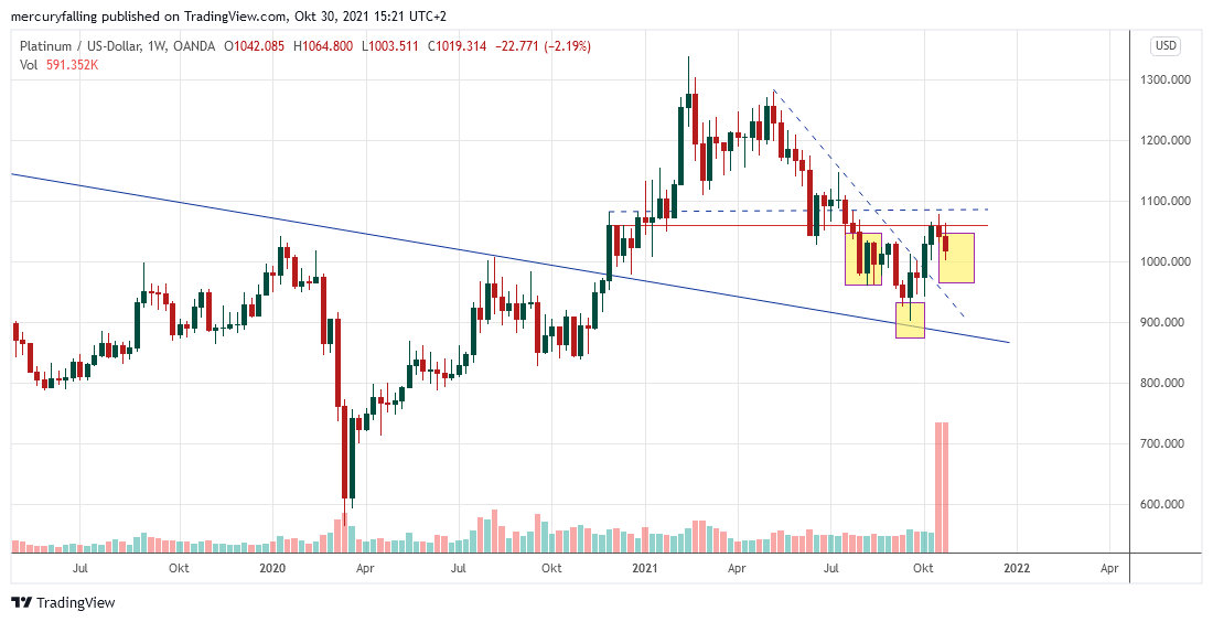 Insgesamt hält die Konsolidierungsbewegung bei Platin weiter an, der Rückgang in dieser Woche hat aber keinen signifikanten Einfluss auf die Gesamteinschätzung.