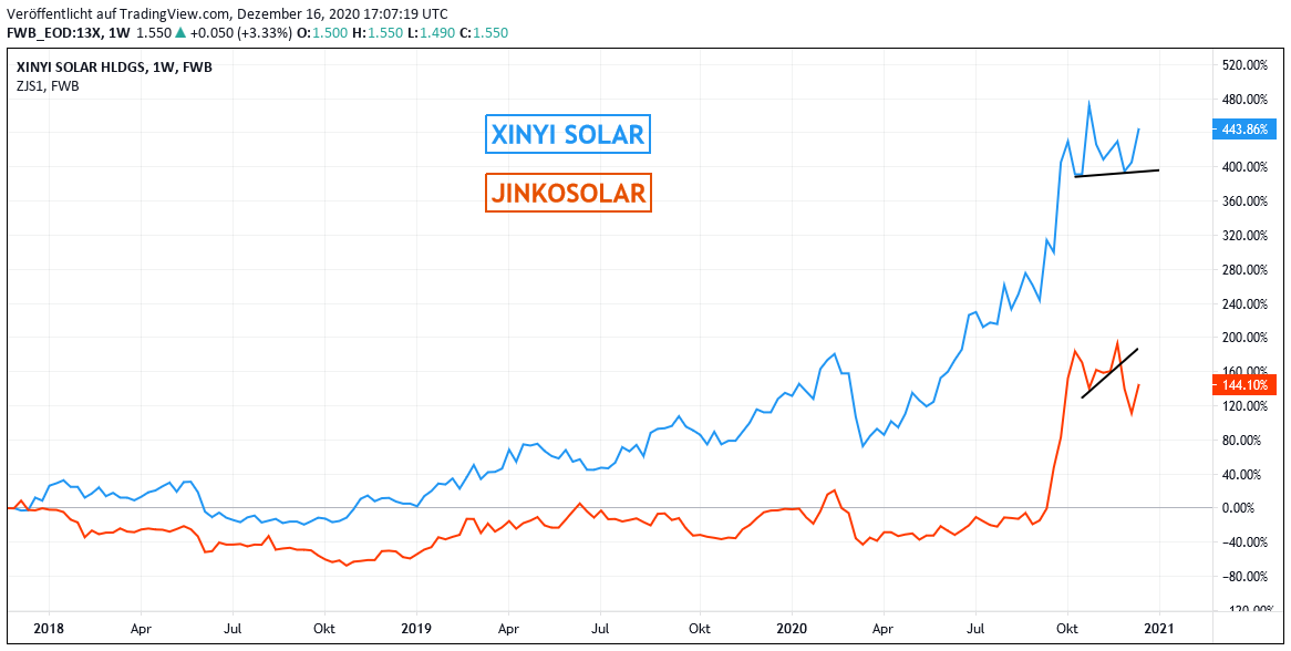 Chart: XINYI SOLAR vs. JINKOSOLAR (jeweils in Euro)